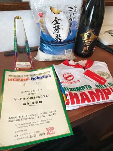 美ヶ原と乗鞍のシリーズ戦。今年は運良く総合優勝♫沖縄210km、ジャパンカップ、乗鞍の3冠を狙ってたけど今年で終わり。結果的に乗鞍は勝てなかったけど頑張ったご褒美に自転車の神様が乗鞍を含んだ松本ヒルクライムの総合優勝をくれたんだと思う。運も実力の…
